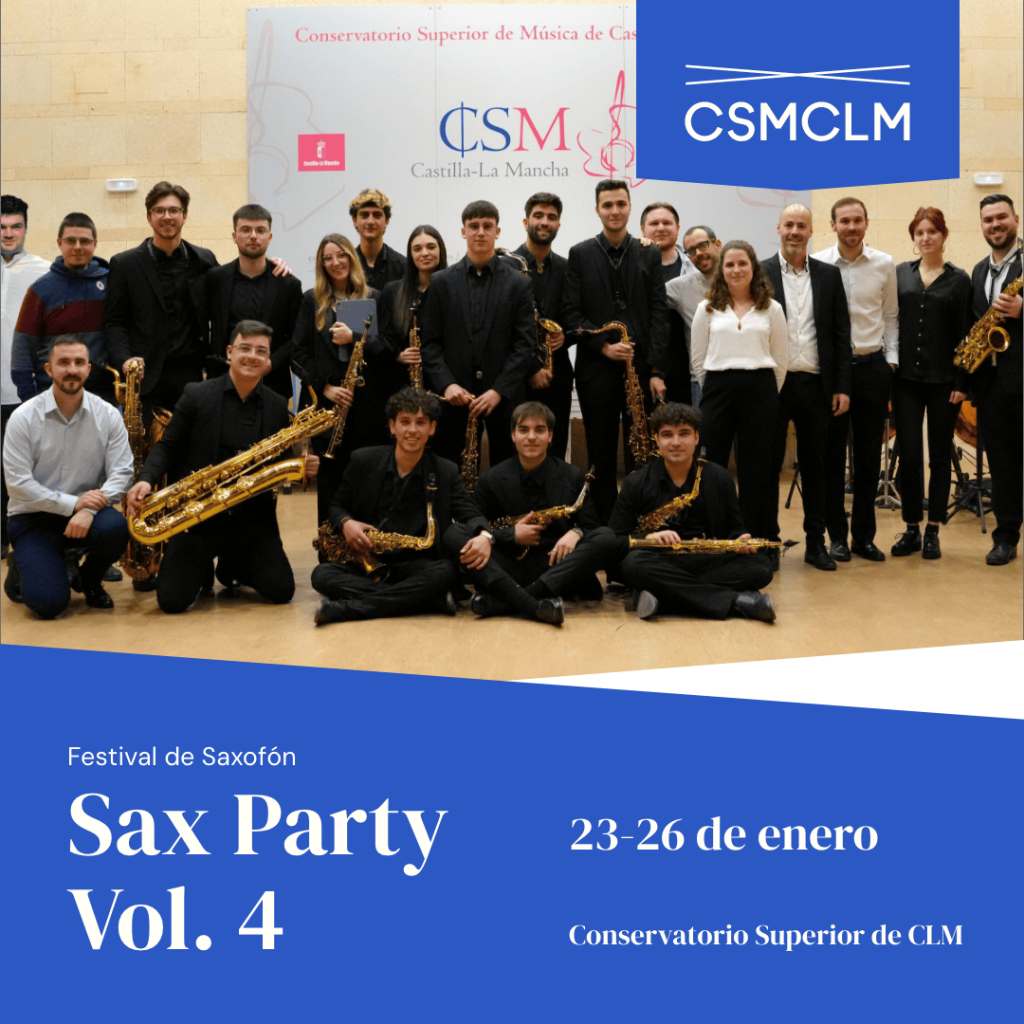 El Festival Sax Party está dirigido al alumnado del CSMCLM, así como a cualquier saxofonista que quiera conocer nuestro conservatorio en una situación única, que une a los profesores de saxofón del conservatorio, con ex-alumnos del aula de saxofón que ahora desarrollan su actividad como profesores y solistas, los alumnos actuales del aula y 2 invitados de talla internacional. Habrá clases individuales con 8 profesores, 3 conciertos y 2 conferencias